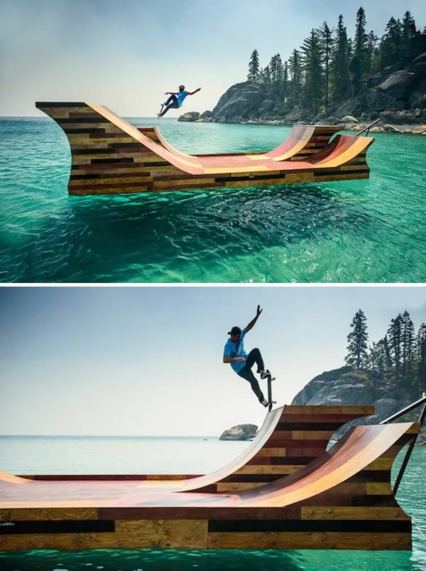 10. Pływająca drewniana rampa do skateboardingu