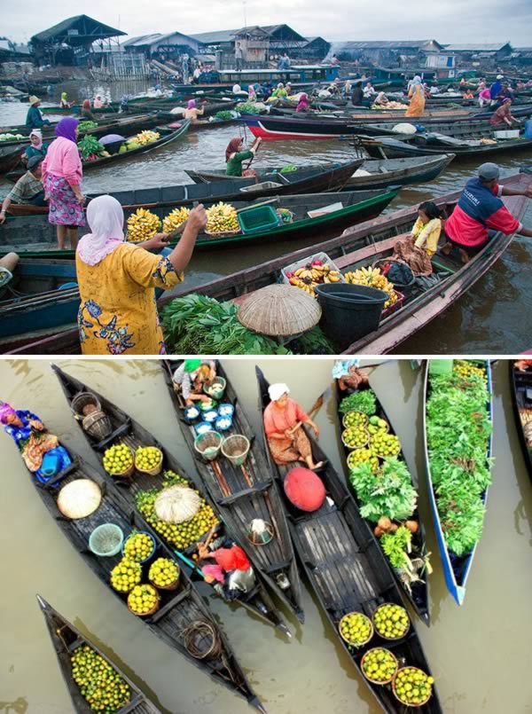 Banjarmasin w Indonezji jest miastem tysiąca rzek. W tym niezwykłym miejscu można odkryć pływający rynek znany jako Muara Kuin, znajdujący się na rzece Barito. Na małych łódeczkach zwanych jukung odbywa się handel warzywami, owocami, rybami oraz wszelkiego rodzaju drobnymi sprzętami domowymi.